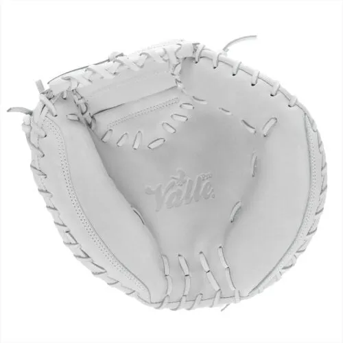 The Valle Eagle 32WT Weighted catcher’s training mitt model in the Valle trademark all white color . The additional weight help improve the player’s development in strengthening his receiving skills & will help a catcher develop better control of their mitt with increased pocket awareness.